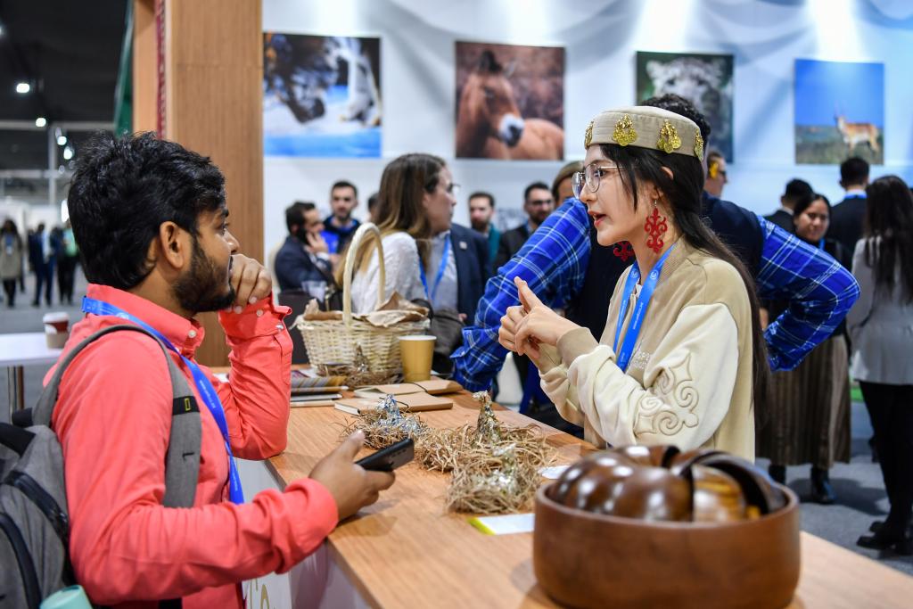 11月11日,在阿塞拜疆巴库,人们参加“生态文明与美丽中国实践”主题边会。